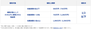 カタログに掲載された製品が補助対象となります。また、補助上限額は従業員数ごとに異なります。