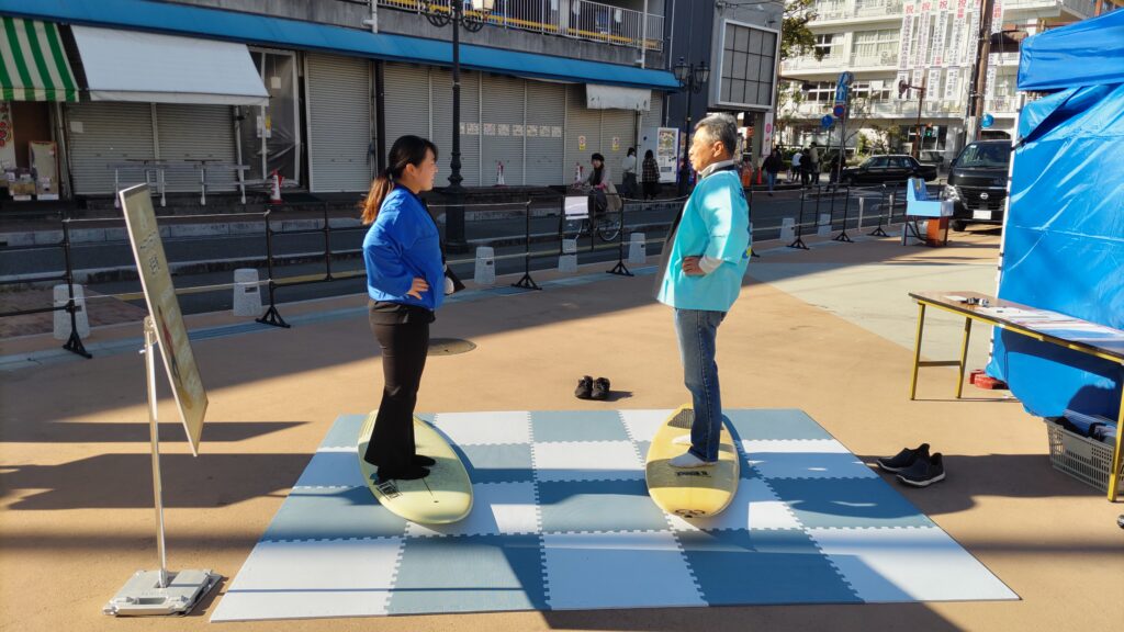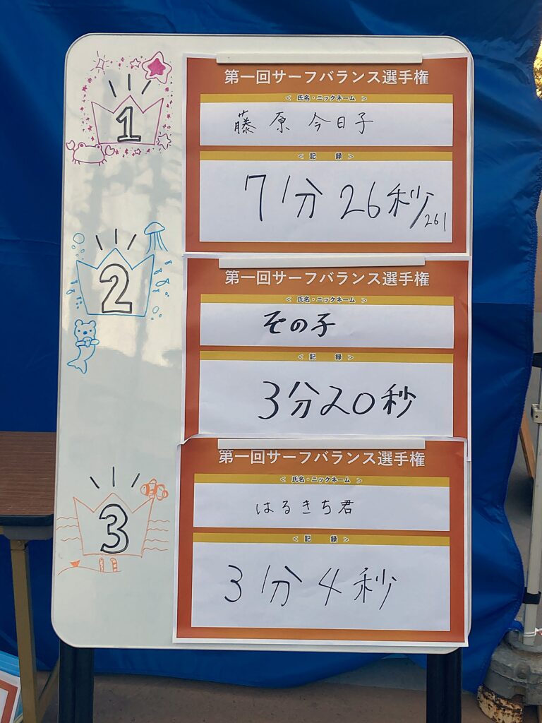 | サーフバランス選手権に挑む西込浩一会長 | サーフバランス選手権結果 |
